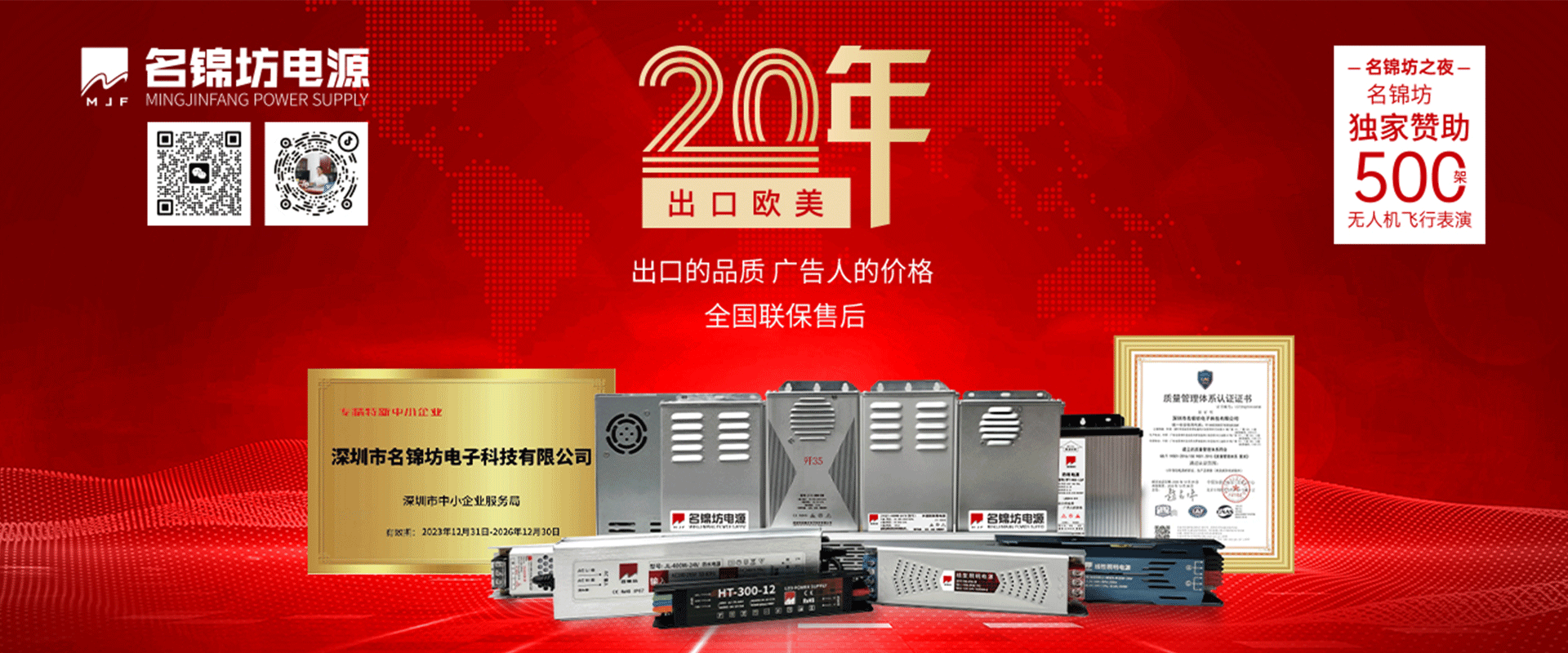 深圳市名錦坊電子科技有限公司是一家集設計研發,生產,銷售,售后服務為一體的綜合性高科技企業。公司依托良好的平臺和資深的技術團隊,以穩鍵、快捷的步履走在行業的前沿,通過與市場零距離的接觸和不間斷的試驗,逐步形成一系列堅如磐石倍受市場所矚目的高品質電源。